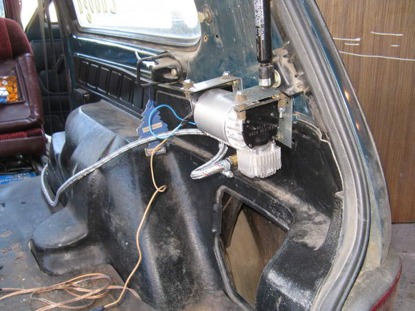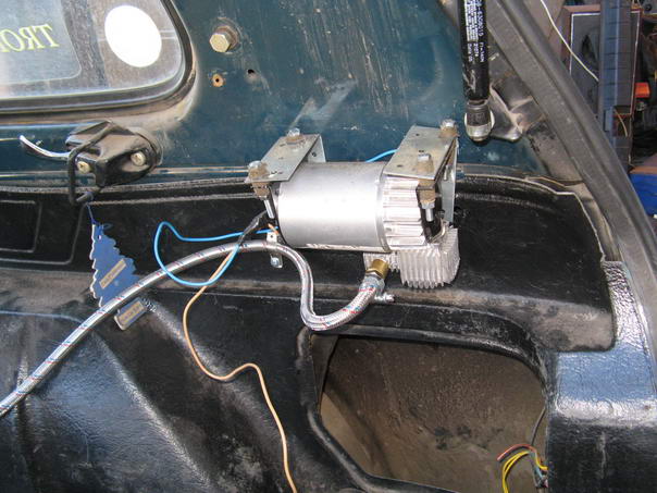 В общем идея жесткой установки компрессора в машине не нова. Идеальное место под капотом, но увы, компрессору там не нравится. Мало того что там жарко, там еще и грязно. Грязь забивает вентиляционные отверстия двигателя и ребра охлаждения цилиндра. В общем под капотом он умирает быстро.