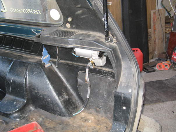 Итак, для моего малого Беркута (R17 - его для Нивы более, чем достаточно) идеальным местом оказалось положение в багажнике, под полкой на которой крепится аудио динамик. Воспользовавшись двумя Писторовскими уголками 90x90 из Метизов, я закрепил его вверх ногами, вешать компрессор боком, как бы того ни хотелось избавившись от уголков, нельзя, хоть и просится - поршень под силой тяжести будет давить на стенку и образуется повышенный износ. Поэтому только строго вертикально: