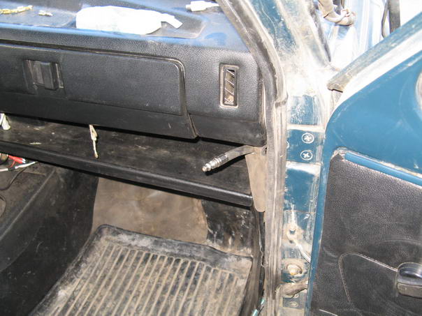 Все это было соединено при помощи водопроводных подводок длинной 3.5 и 2 метра, а хвост для подключения шланга выведен через тройник под бардачком: