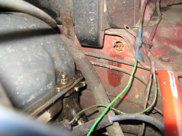 Сверлим дырки для крепления педали по месту. Затем второй самконтрящейся гайкой прикручиваем тросик к педали. Обратите внимание, на фото тросик идет над тросом спидометра, это не правильно, пришлось откручивать и прикручивать заново. Не наступайте на мои грабли.