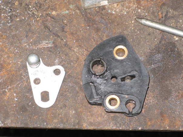 Из подручного материала вырезаем крепление для оплетки тросика, у меня была писторовская пластина. Разсверлил отверстие до 8.5мм и сделал прорезь для тросика болгаркой.