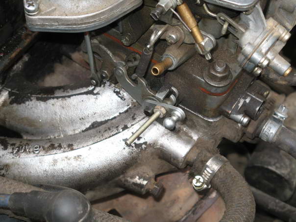 Снимаем кастрюлю, откручиваем гайку крепления оси дросельной заслонки и снимаем рычаг акселератора.