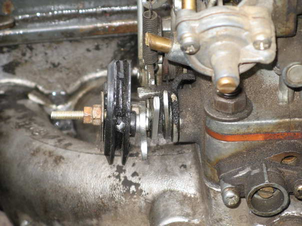 После закрепления головку болтика пришлось еще чутка подточить, чтобы он не задевал за гайку крепления оси заслонок.