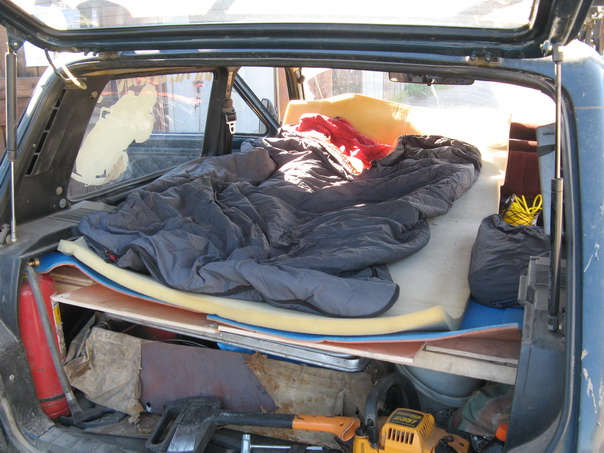 "Ночевать в машине неудобно!" - так считают примерно 70% автотуристов. Основную часть их доводов составляет утверждение что в кресле неудобно, оно не ровное, как не раскладывай. Что-ж, тяжело не согласиться... А если не на сиденье, а на полу ? Например когда у меня была Фронтера в ней был ровный пол 2 метра на 1 м 20 см - вполне себе двуспальная кровать!