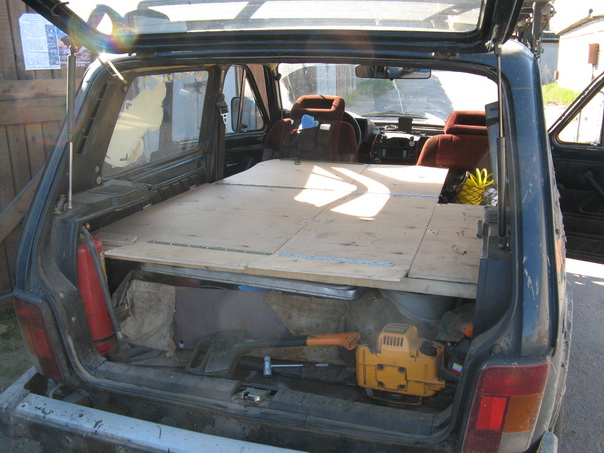 А теперь о том, как всего этого достичь... Конечно, если у вас какой-нибудь длиннобазный Ниссан-Патрол вопросов тут нет. И длинна достаточна и есть куда вещи переложить, а если у вас : короткая НИВА ??? "Невозможно" - скажете вы - "В ней сидеть то негде, не то что лежать!" - и окажетесь не правы.