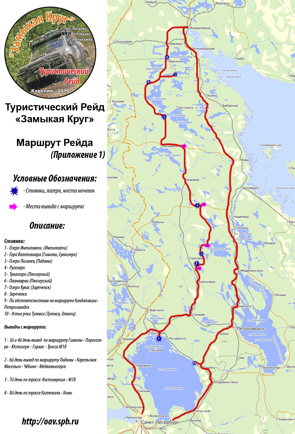 В общем-то доехать до Полярно Круга особых проблем ни у кого не вызывает - сел да поехал. Даже у ГеоКешеров есть тайник рядом со стелой на трассе М-18, который называется "Фото, которое есть у всех", поэтому было решено, что ехать надо не по асфальту! И это правильно, ведь в основе путешествия лежит само путешествие, а не посещение конкретных точек или достопримечательностей, вот и образовалась идея рейда: "От Санкт-Петербурга до полярного круга минуя трассу М-18 "Кола"". Оставалось только создать маршрут соответствующий задуманной идее. В южной части особых проблем не возникало - маршрут пролегал через Приозерск и Сортавалу, далее на Суоярви, а там и через Воттоваару выходил на маршрут 2006 года, кстати, а почему бы в этот раз не заехать на Пизанец? Ладно, с Пизанцем разберемся потом, там тоже все не так просто...