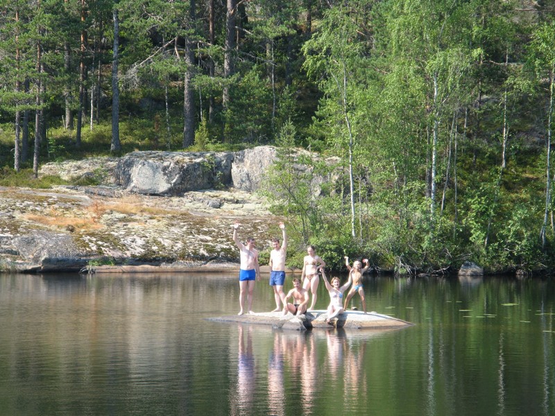 Вечером все дружно отправились в пешую прогулку: обогнув озеро, поднялись на вершину полуострова Импенеми, с которой открывается поистине потрясающая панорама Ладожских шхер. Затем спустились к Ладоге, где встретили редкого обитателя этого озера - нерпу.