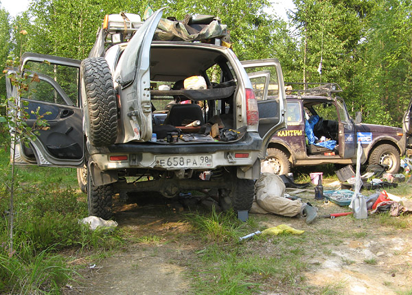 Подводя итоги, предлагаю свои рекомендации по подготовке машин туристического класса. Конечно же, стоит уделить внимание удобству пользования автомобилем. Здесь фантазия безгранична: всевозможные полочки, крепления, держатели, трансформирование салона, установка дополнительного оборудования (компрессор, люста, навигаторы, инверторы и т.п.). Экспедиционный багажник, наверное, одна из самых полезных вещей, которую можно установить на автомобиль в процессе подготовки. Далее следуют защиты всего, чего только можно. Чем больше защит, тем меньше шансов остаться без узлов или агрегатов в лесу. Так же, к области защит можно отнести силовой обвес - бампера и пороги, кроме защиты, грамотно изготовленные силовые элементы позволят оперировать реечным домкратом "Хай-Джек". Лебедка позволит вам чувствовать себя уверенно в любой глуши.