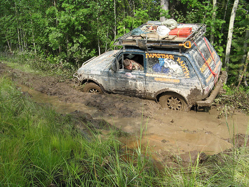 Болото жуткое, но машина при помощи нескольких человек проходит сама,