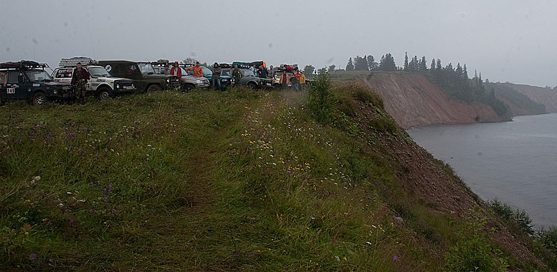 Дождик, начавшийся накануне, продолжался всю ночь и все утро. Он то усиливался, то стихал, но даже тогда не становилось лучше - весь воздух был пропитан мокрой взвесью. В общем, из спальника вылезать особого желания не было, но все-таки пришлось, ведь это был первый "режимный" день рейда. Режим заключался в том, что было назначено четкое время подъема 8.00 и четкое время отправления 10.00; были назначены дежурные, которые должны были поставить вариться кашу и протрубить подъем. Дежурные со своей задачей справились, а вот выехать вовремя нам не удавалось. Надо отметить, что нам это не удавалось никогда - всегда или Опаньки или Хаха были готовы через 5 минут поехать, но эти 5 минут обязательно получались почему-то от 20 до 40. Нам предстоял длинный и насыщенный день, программой максимум этого дня было намечено дойти до Ворожгоры!