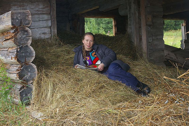 В качестве бонуса нам достался рыбацкий сарай, построенный из досок, оставшихся от деревни и порта. Отсутствующую стену затягиваем полиэтиленом и другими подручными материалами. Затапливаем буржуйку. В сарае становится тепло и уютно. Комфорт! Завтра устроим первый душ. Кроме того, на крыше сарая худо-бедно "берет" мегафон и оттуда можно позвонить. Сидя у печки, сквозь щели слышно, как Женя, специально приехавший для участия в рейде из Берлина, стоя на крыше сарая, рассказывает о своих впечатлениях кому-то из друзей - ему на 4-ый день рейда, наконец-то, активировали СИМ-карту...