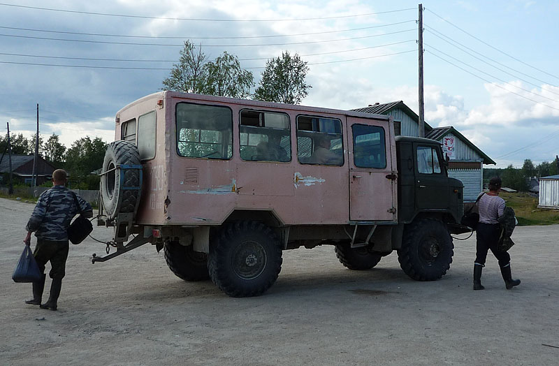 Но, пока жизнь кипит и бурлит. Тем временем, как мы затоваривались и заправляли канистры питьевой водой, подъехал местный автобус - Газ-66, из которого вышли суровые мужики и разошлись кто-куда: видимо, приехала с работы смена. В отличие от других поселков, таких как ВирандОзеро, в котором мы очутились позже, пьяниц, пытавшихся разжиться у нас дармовой выпивкой мы не видели. Но, как и во всей Карелии, крайне неприятное отношение к мусору. Весь свой мусор мы из лесов вывозим с собой и выкидываем в специально определенных для этого местах. Так и здесь, у одной из местных жительниц я поинтересовался, где у них в поселке выкинуть мусор можно. Моему вопросу удивились и ответили, что выкиньте где хотите, что у них все так делают. Я сказал, что это противоречит нашей этике и может быть есть у них централизованная свалка или помойка? Мне ответили, что за БАРом есть мусорные контейнеры. "За Баром?" - удивился я. Мне указали на здание с разбитыми окнами и выцветшей вывеской "БАР" - я никак не мог поверить, что это заведение действующее. Заглянув за задание, я поверил!